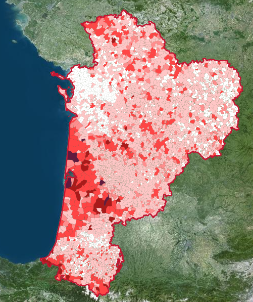 Potentiel radon par communes en région Nouvelle-Aquitaine