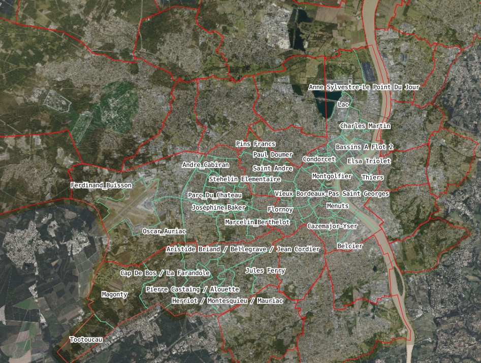 Ce jeu de données représente sous forme surfacique la sectorisation scolaire du territoire de la ville de Bordeaux