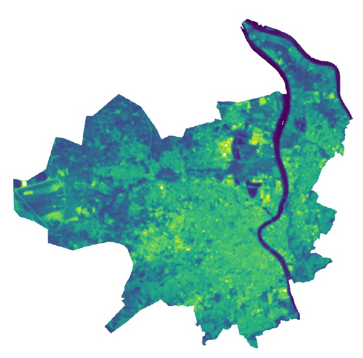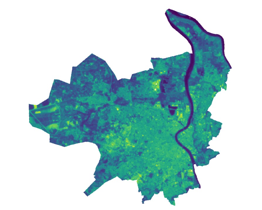 Ce jeu de données raster représente les températures de surface par un dégradé de couleurs figurant les zones froides/chaudes (du bleu au jaune). Chaque pixel représente un carré de 30 m de côté. Le cliché a été pris le 8 juillet 2018 à 12h47 (heure locale). Les températures sont exprimées en degré Celsius. Cette carte donne une première idée de la localisation des Ilots de Chaleur et de Fraîcheur Urbains, mais ne les représente pas de façon précise, puisque la température de surface n’est pas obligatoirement la température de l’air. En zone dense, cette carte représente principalement la température des toits, des voiries et des sols. Dans tous les cas, l’impact des façades n’est pas visible.