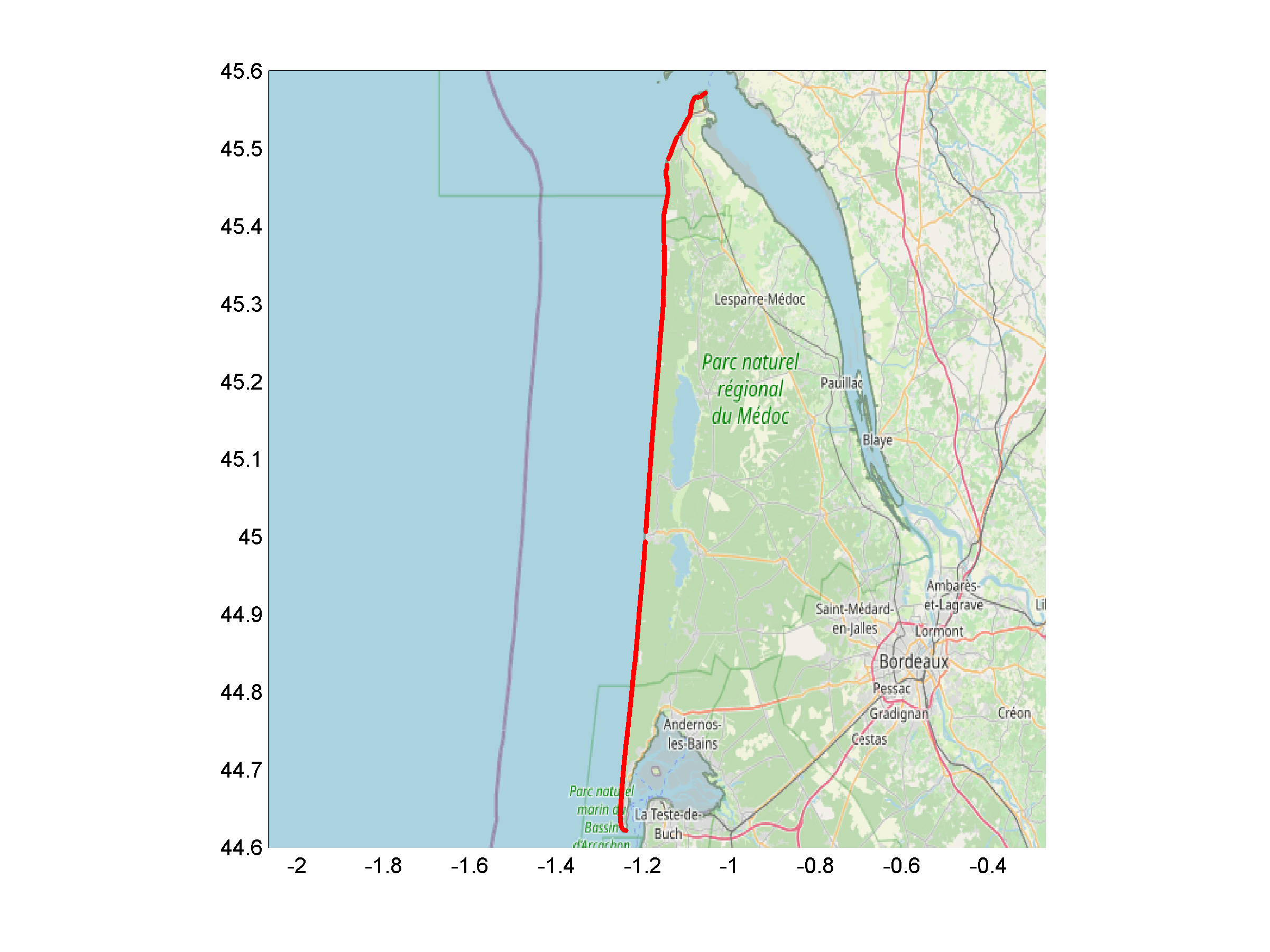 * Trait de côte girondin * Levé entre Cap-Ferret et le Verdon * Réalisé au GNSS en PPK, sur un quad * Date : 3 et 4 avril 2014